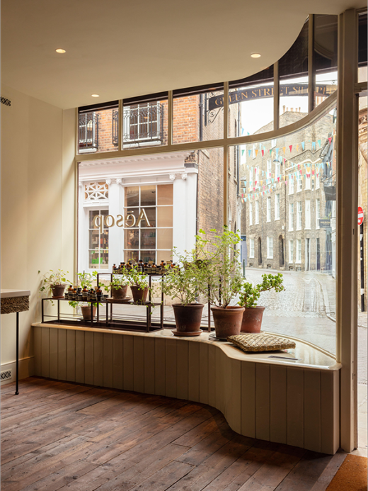 “Using both ancient and pioneering techniques, local plant matter is the primary material. A palette of the land and of the water. Oversizes shelves- reaching 4.3m in a single length- are made from English freshwater bulrush harvested and woven locally. JAMESPLUMB commissioned Felicity Irons - one of the last English rush weavers and her team @rushmatters, who have brought this archaic and yet renewable practice into the 21st century and worked closely with them to realise the many bulrush elements in the store."